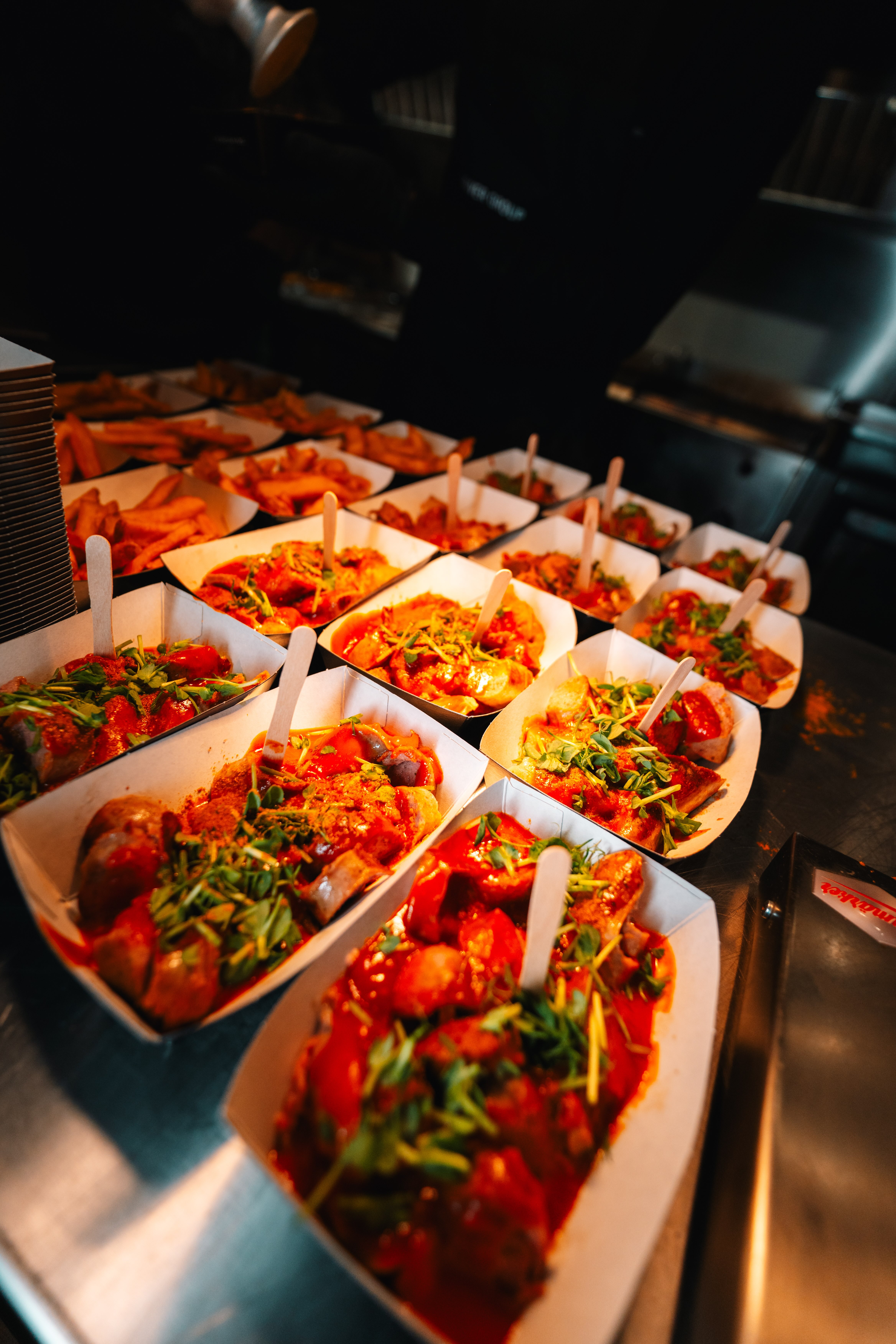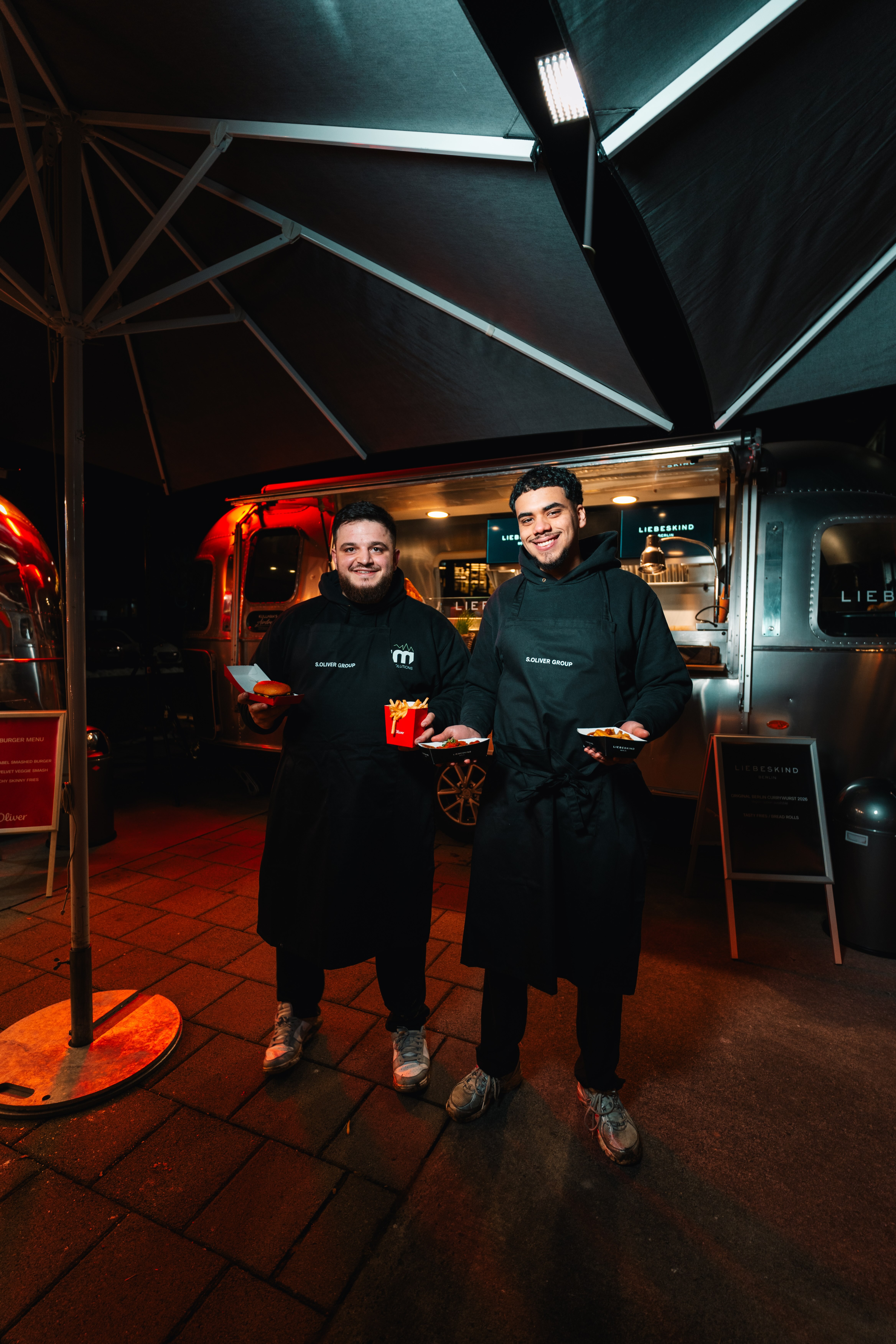 Im Außenbereich bildeten fünf Foodtrucks das kulinarische Zentrum des Events. Dieses Foodtruck Catering für Firmenveranstaltungen sorgte für eine offene, kommunikative Atmosphäre und bot den Gästen abwechslungsreiche Streetfood-Kreationen auf Premium-Niveau. Ergänzt wurde das Konzept durch einen professionell ausgestatteten Barcontainer, der als zentraler Treffpunkt für Drinks und Austausch fungierte.